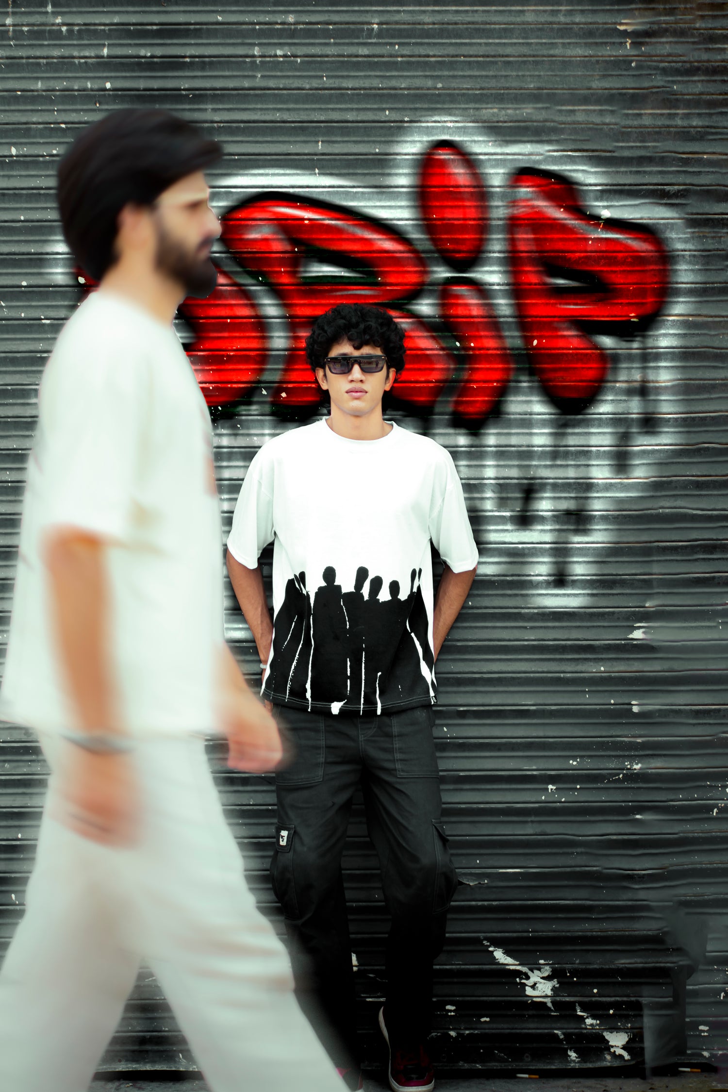 A silhouette story told in monochrome. This oversized streetwear tee fuses art with attitude โ perfect for standing out in the crowd or blending in with the underground.